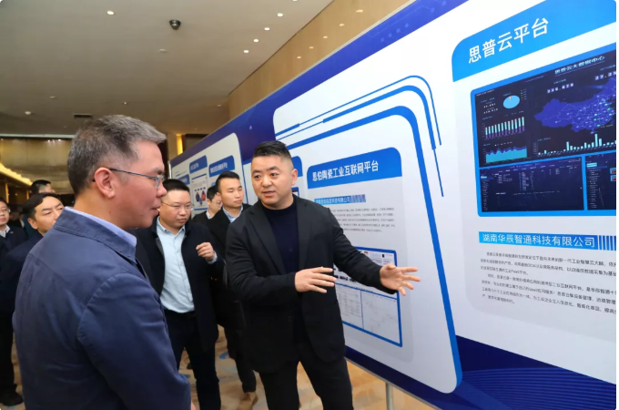 • NO钱包官网智通总经理傅帝向湖南省工业和信息化厅党组书记、厅长曹慧泉介绍思普云在工业领域应用情况